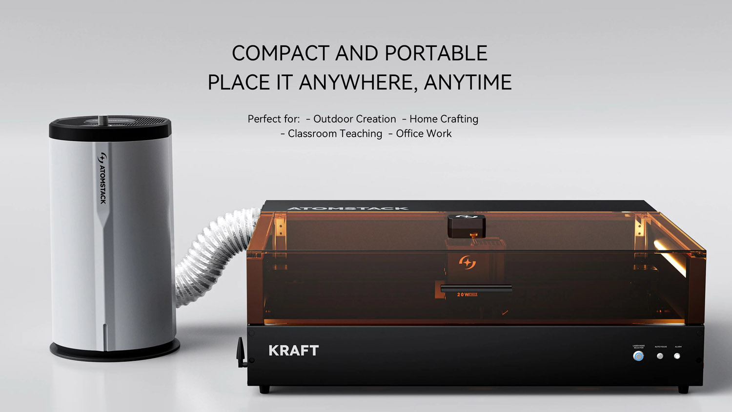Model AtomStack D3 je napredni sustav filtracije posebno razvijen za korisnike koji nemaju mogućnost odvođenja ispušnih plinova putem cijevi van. Zahvaljujući ovoj tehnologiji, zrak u zatvorenim prostorima poput ureda ili kućnih radionica ostaje apsolutno čist čak i kod intenzivnog rezanja i graviranja.