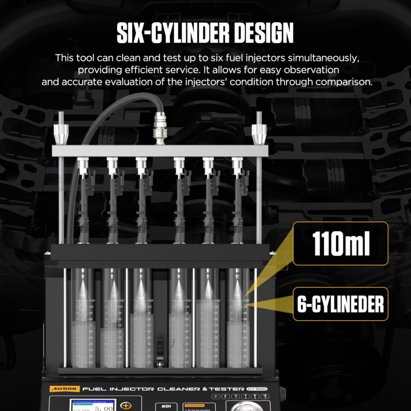DINAMIKA TESTOVA I GDIAUTOOL CT500 predstavlja prekretnicu u dijagnostici izravnog ubrizgavanja Za razliku od standardnih uređaja, CT500 generira kontrolni signal prilagođen specifičnostima brizgaljki visokog tlaka, što omogućuje njihovo sigurno otvaranje i precizan test performansi Ključni aspekti dijagnostike: