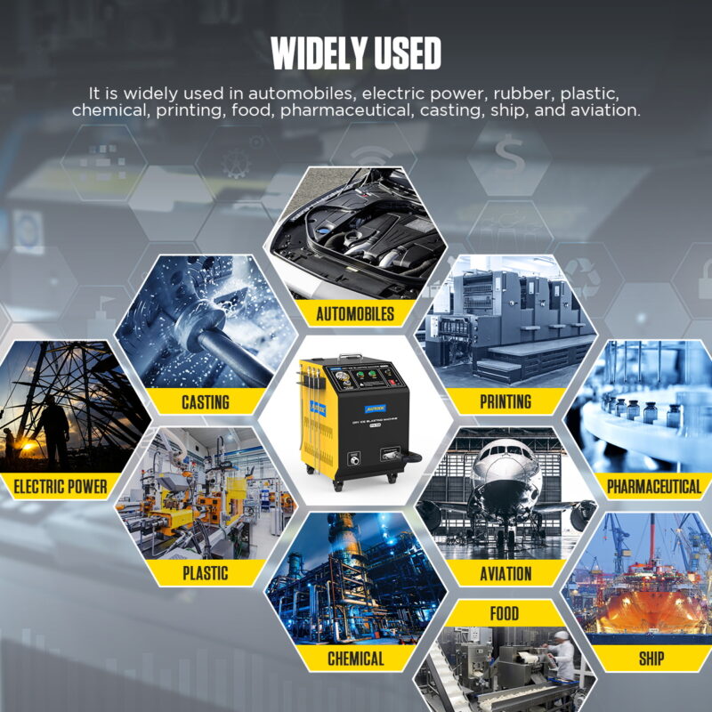 Energetika i elektrotehnika: Sigurno čišćenje upravljačkih ormara, izolatora, turbina, transformatora i elektromotora. Metoda je nevodljiva, što omogućuje rad na uređajima pod naponom (uz poštivanje odgovarajućih procedura).