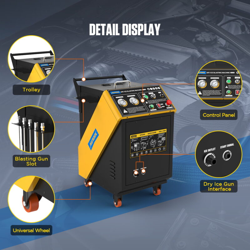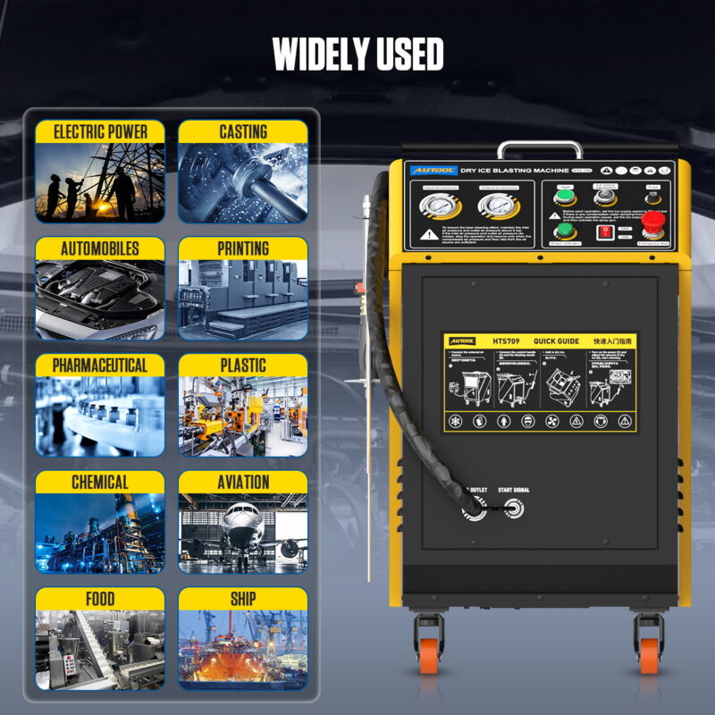 TEHNOLOGIJA SUHOG LEDA (CO2)Stroj AUTOOL HTS709 koristi fenomen sublimacije, odnosno izravan prijelaz ugljičnog dioksida iz čvrstog u plinovito stanje. Ovaj proces je neusporedivo učinkovitiji od tradicionalnog pranja pod tlakom ili pjeskarenja. Tri faze uništavanja nečistoće:
