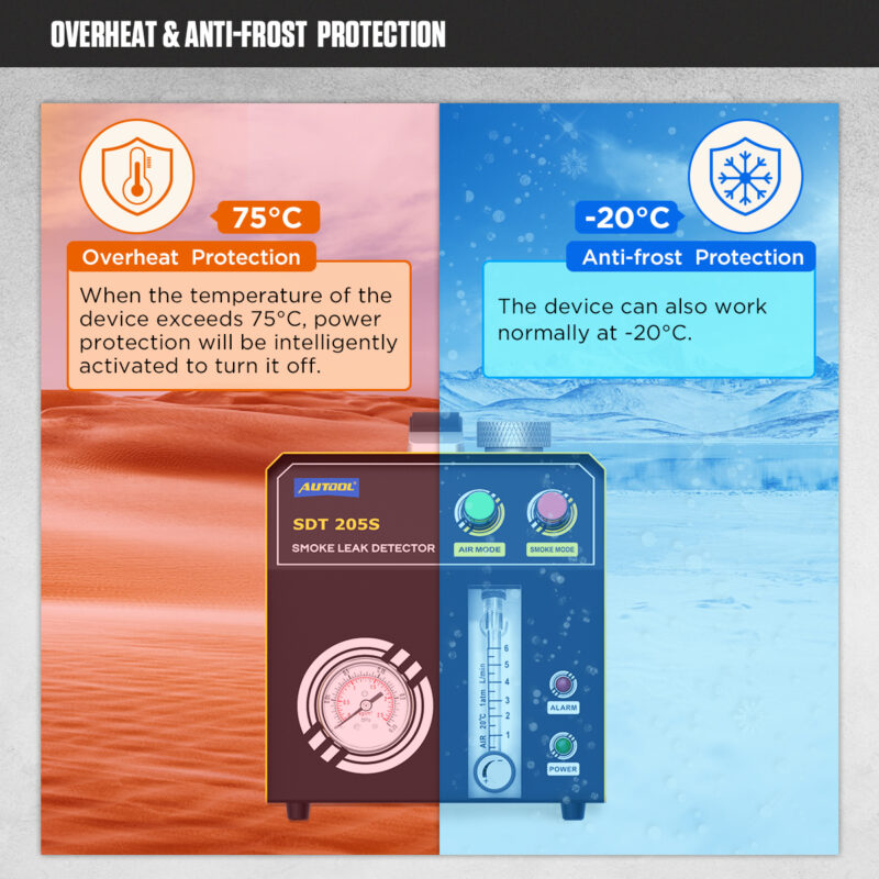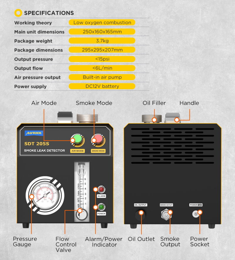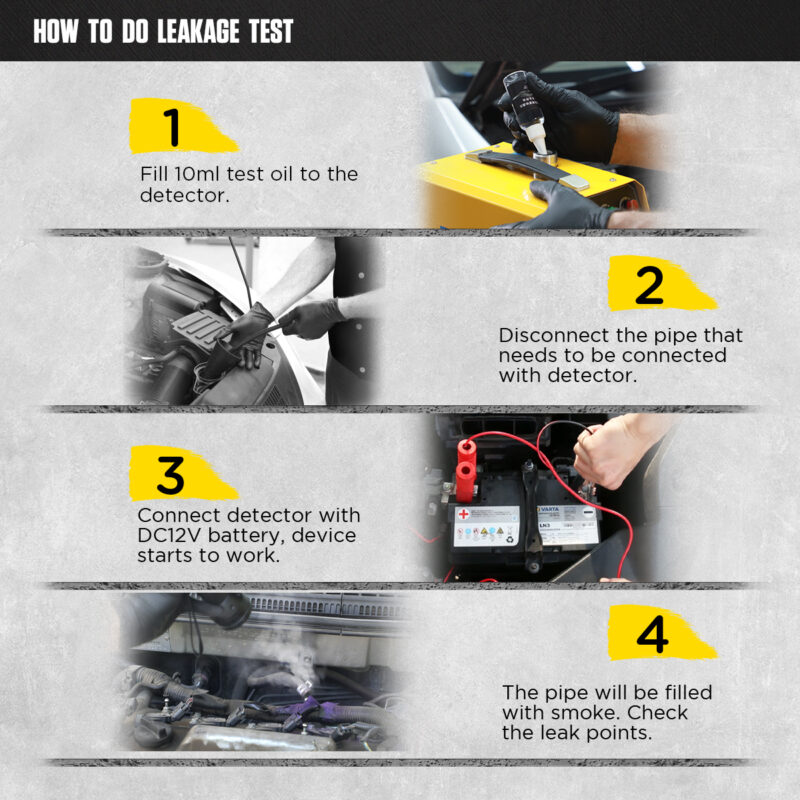 SVESTRANA DIJAGNOSTIKA SUSTAVAUređaj generira dim pod optimalnim tlakom (do 15 PSI / oko 1 bar), što omogućuje sigurno testiranje većine sustava na osobnim, dostavnim vozilima i motociklima. Glavna područja testiranja: