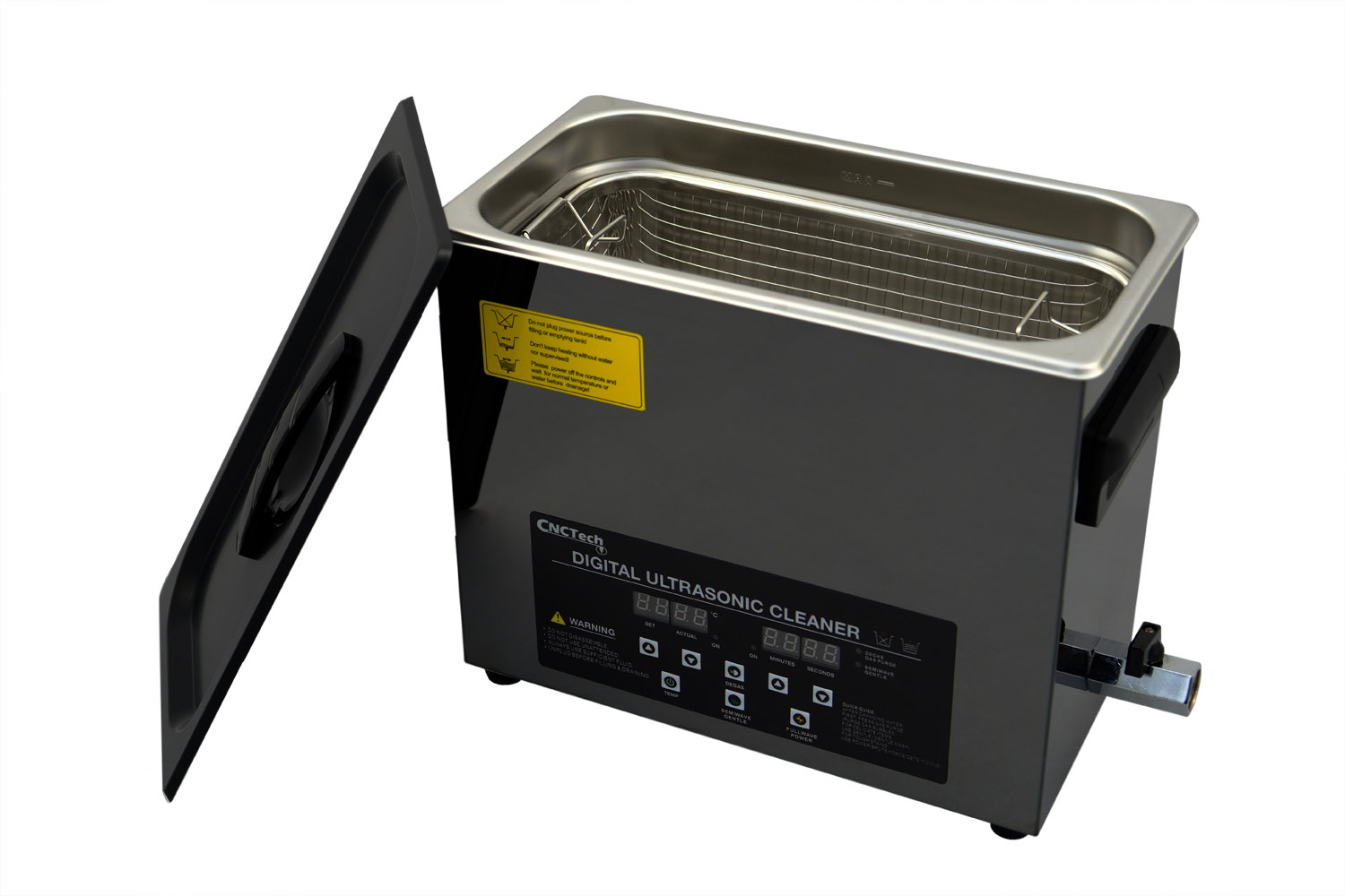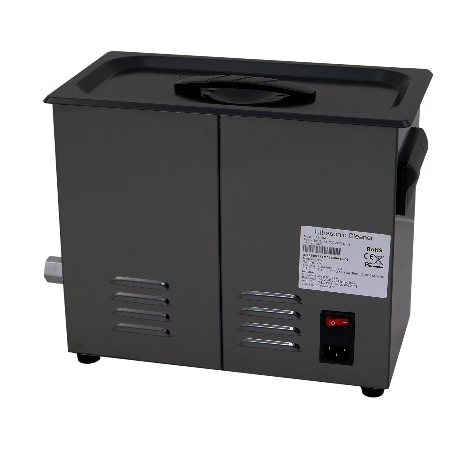 Ultrazvučni čistač GX30A opremljen je spremnikom od visokokvalitetnog nehrđajućeg čelika SUS304 s kapacitetom od 6 litara, ultrazvučnom snagom od 180 W i snagom grijanja od 200 W.